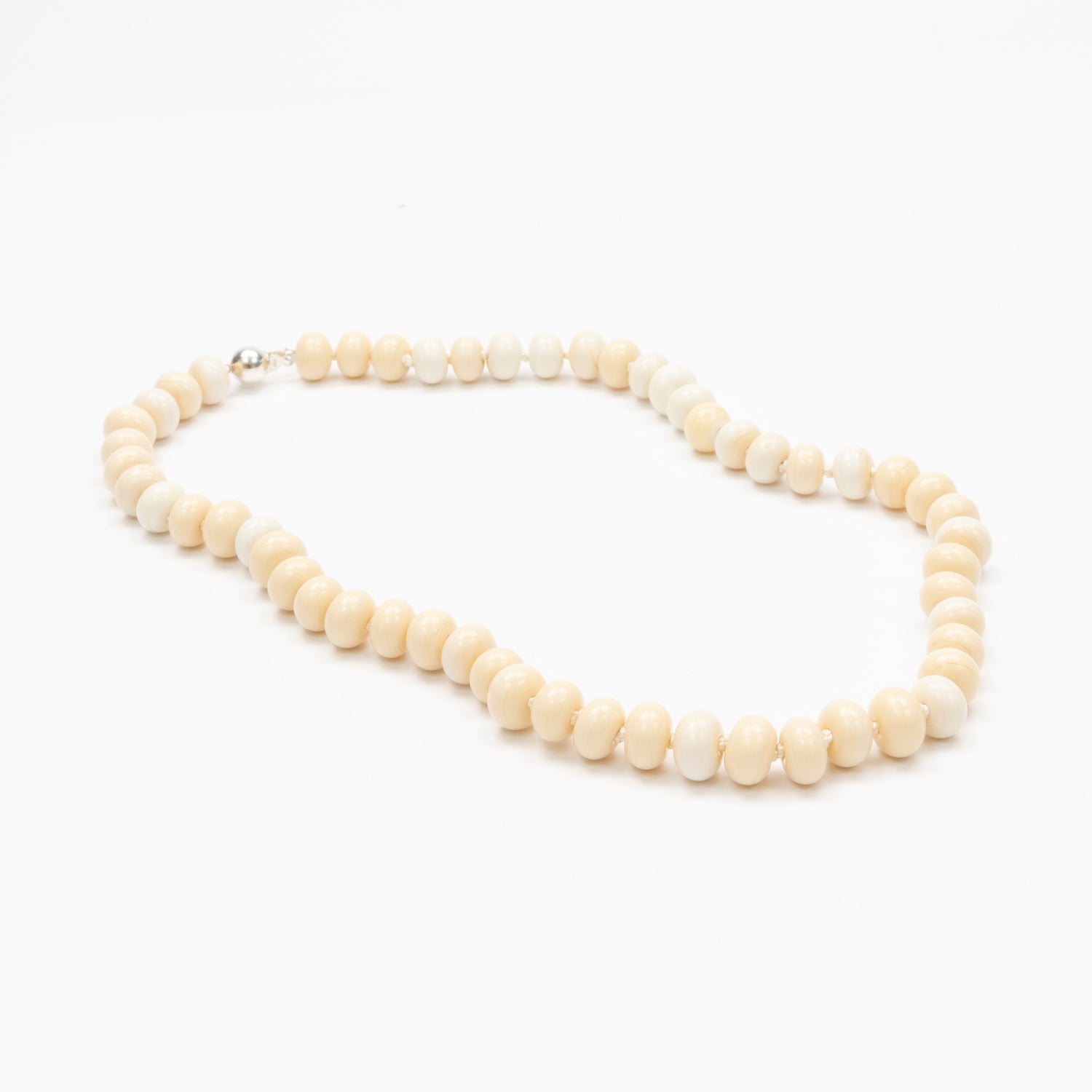 Hand-knotted and finished with a sterling silver clasp, Alba showcases individually crafted glass beads, each radiating natural beauty. Each bead is individually handcrafted using the traditional lampworking technique, where molten glass is shaped in the flame of a torch. This artisanal process makes every bead truly one-of-a-kind.