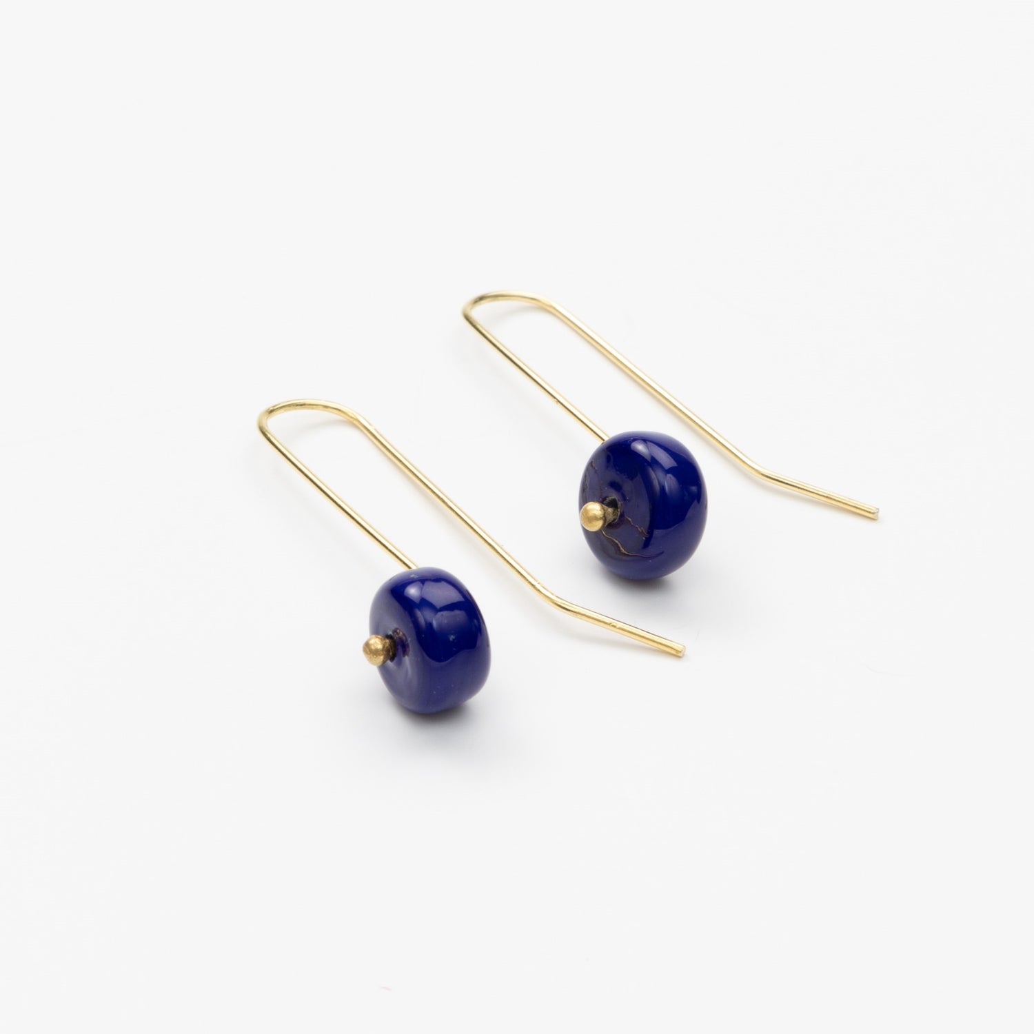 Goldplated earrings with handmade glassbeads. Each bead is individually crafted using the traditional lampworking technique, where molten glass is shaped in a torch flame, making every piece truly one-of-a-kind.