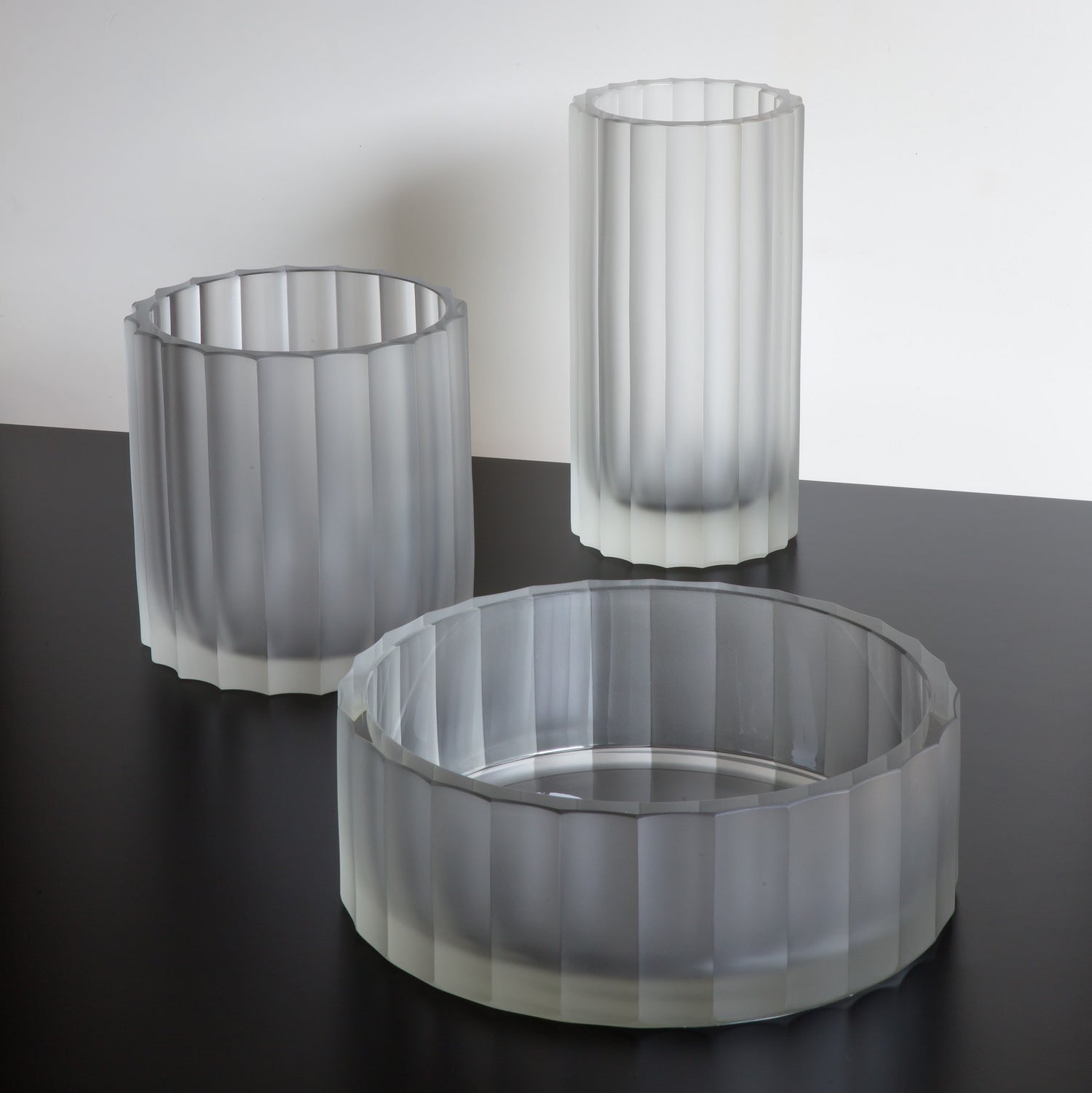Rational, linear, accurate, sleek and sober. A timeless object, blown and ground by the best craftsmen. Fully hand-made. These objects are made from crystal. Crystal is softer than glass and therefore more suitable for grinding. These are both decorative and functional objects.